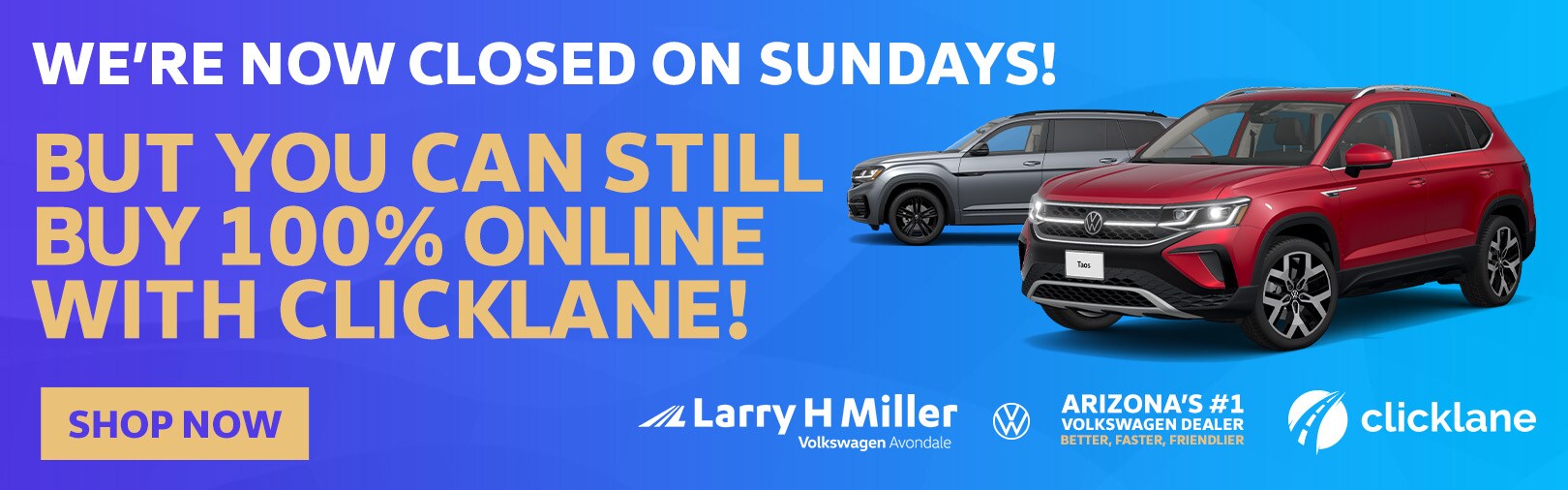 Larry H. Miller Volkswagen Avondale is a prestigious Volkswagen dealer serving Phoenix, Glendale, Scottsdale, and the Avondale, AZ area. Larry H. Miller Volkswagen Avondale has a wonderful reputation of providing excellent automotive services in the Phoenix metro. Our primary objective is to ensure every guest receives the most individual experience likely whether you're visiting for buying Volkswagen auto parts, financing a vehicle, auto service, or shopping for a used car, new Volkswagen, or Certified Pre-Owned Volkswagen. As a result of our hard work and devotion to providing a awesome guest experience, is one of the top-rated Volkswagen dealerships in the state of AZ. Check out some of our online reviews! With Larry H. Miller Volkswagen Avondale and any Larry H. Miller dealer, you have the option to decrease the amount of time you spend at a dealership when shopping for a car by using Clicklane, the first absolutely online buying experience from Larry H. Miller Automotive. Complete with live trade appraisals, an online loan marketplace, and instant loan decisions. It's a extraordinary and enjoyable new way to buy a car that is built to give you the most incredible car buying experience imaginable. Learn more about shopping with Larry H. Miller Volkswagen Avondale online. Do you prefer the in-person dealer experience? No problem! With Clicklane you can upload documents such as driver's license or insurance cards to lessen time when visiting the dealership in person.