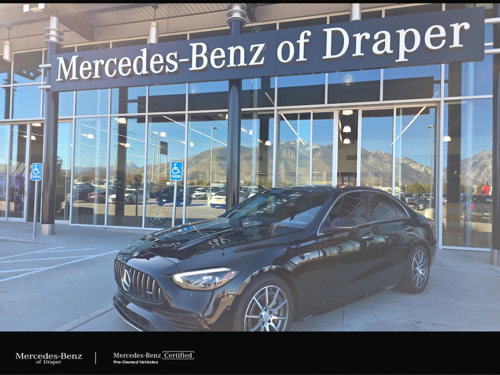 Mercedes-Benz of Draper proudly offers this 2023 Mercedes-Benz C 43 AMG® AWD . It is well equipped and includes these features and benefits: Premium Trim Package, Mercedes-Benz Certified Pre-Owned Certified, 4MATIC®, 11.9 Center Touchscreen Display, 4-Wheel Disc Brakes, 5 Speakers, ABS brakes, Adaptive suspension, Air Conditioning, Alloy wheels, AM/FM radio: SiriusXM, Apple CarPlay®/Android Auto®, Auto High-beam Headlights, Auto tilt-away steering wheel, Auto-dimming door mirrors, Auto-dimming Rear-View mirror, Automatic temperature control, Brake assist, Bumpers: body-color, Compass, Delay-off headlights, Driver door bin, Driver vanity mirror, Dual front impact airbags, Dual front side impact airbags, Electronic Stability Control, Emergency communication system: Mercedes-Benz Emergency Call Service, Exterior Parking Camera Rear, Four wheel independent suspension, Front anti-roll bar, Front Bucket Seats, Front Center Armrest, Front dual zone A/C, Front reading lights, Fully automatic headlights, Genuine wood dashboard insert, Head restraints memory, Heated door mirrors, Heated front seats, Illuminated entry, Knee airbag, Low tire pressure warning, MB-Tex/Microfiber Upholstery, Memory seat, Occupant sensing airbag, Outside temperature display, Overhead airbag, Overhead console, Panic alarm, Passenger door bin, Passenger vanity mirror, Power adjustable front head restraints, Power door mirrors, Power driver seat, Power Heated Front Seats w/Memory, Power moonroof, Power passenger seat, Power steering, Power windows, Premium audio system: MBUX, Radio data system, Radio: FrontBass 5-Speaker Audio System, Rain sensing wipers, Rear anti-roll bar, Rear fog lights, Rear reading lights, Rear seat center armrest, Rear window defroster, Remote keyless entry, Security system, Speed control, Speed-sensing steering, Split folding rear seat, Spoiler, Sport steering wheel, Steering wheel memory, Steering wheel mounted audio controls, Tachometer, Telescoping steering wheel, Tilt steering wheel, Traction control, Trip computer, Turn signal indicator mirrors, Variably intermittent wipers, Weather band radio, and Wheels: 18 x 8.0J AMG® 10-Spoke.