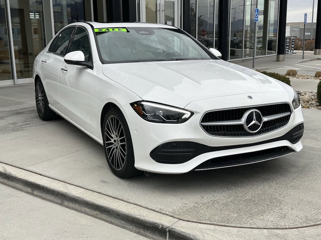 Mercedes-Benz of Draper proudly offers this 2025 Polar White Mercedes-Benz C 300 AWD . It is well equipped and includes these features and benefits: 4MATIC®, 11.9 Center Touchscreen Display, 18 5-Spoke Wheels, 4-Wheel Disc Brakes, 5 Speakers, ABS brakes, Air Conditioning, Alloy wheels, AM/FM radio: SiriusXM, Anti-whiplash front head restraints, Apple CarPlay®/Android Auto®, Auto High-beam Headlights, Auto tilt-away steering wheel, Auto-dimming door mirrors, Auto-dimming Rear-View mirror, Automatic temperature control, Black Fabric Headliner, Brake assist, Bumpers: body-color, Child-Seat-Sensing Airbag, Compass, Delay-off headlights, Driver door bin, Driver vanity mirror, Dual front impact airbags, Dual front side impact airbags, Electronic Stability Control, Emergency communication system: Mercedes-Benz Emergency Call Service, Exterior Parking Camera Rear, First Aid Kit, Four wheel independent suspension, Front anti-roll bar, Front Bucket Seats, Front Center Armrest, Front dual zone A/C, Front reading lights, Fully automatic headlights, Garage door transmitter: HomeLink, Genuine wood dashboard insert, Head restraints memory, Heated door mirrors, Heated front seats, Illuminated entry, Knee airbag, Leather steering wheel, Low tire pressure warning, Lumbar Support, MB-Tex Upholstery, Memory seat, Occupant sensing airbag, Outside temperature display, Overhead airbag, Overhead console, Panic alarm, Passenger door bin, Passenger vanity mirror, Piano Black Lacquer Center Console, Power adjustable front head restraints, Power door mirrors, Power driver seat, Power Heated Front Seats with Memory, Power moonroof, Power passenger seat, Power steering, Power windows, Premium audio system: MBUX, Radio data system, Radio: FrontBass 5-Speaker Audio System, Rain sensing wipers, Rear anti-roll bar, Rear fog lights, Rear reading lights, Rear seat center armrest, Rear window defroster, Remote keyless entry, Security system, SiriusXM Satellite Radio, Speed control, Speed-sensing steering, Split folding rear seat, Steering wheel memory, Steering wheel mounted audio controls, Tachometer, Telescoping steering wheel, Tilt steering wheel, Traction control, Trip computer, Turn signal indicator mirrors, Variably intermittent wipers, Weather band radio, and Wheels: 18 Multispoke.