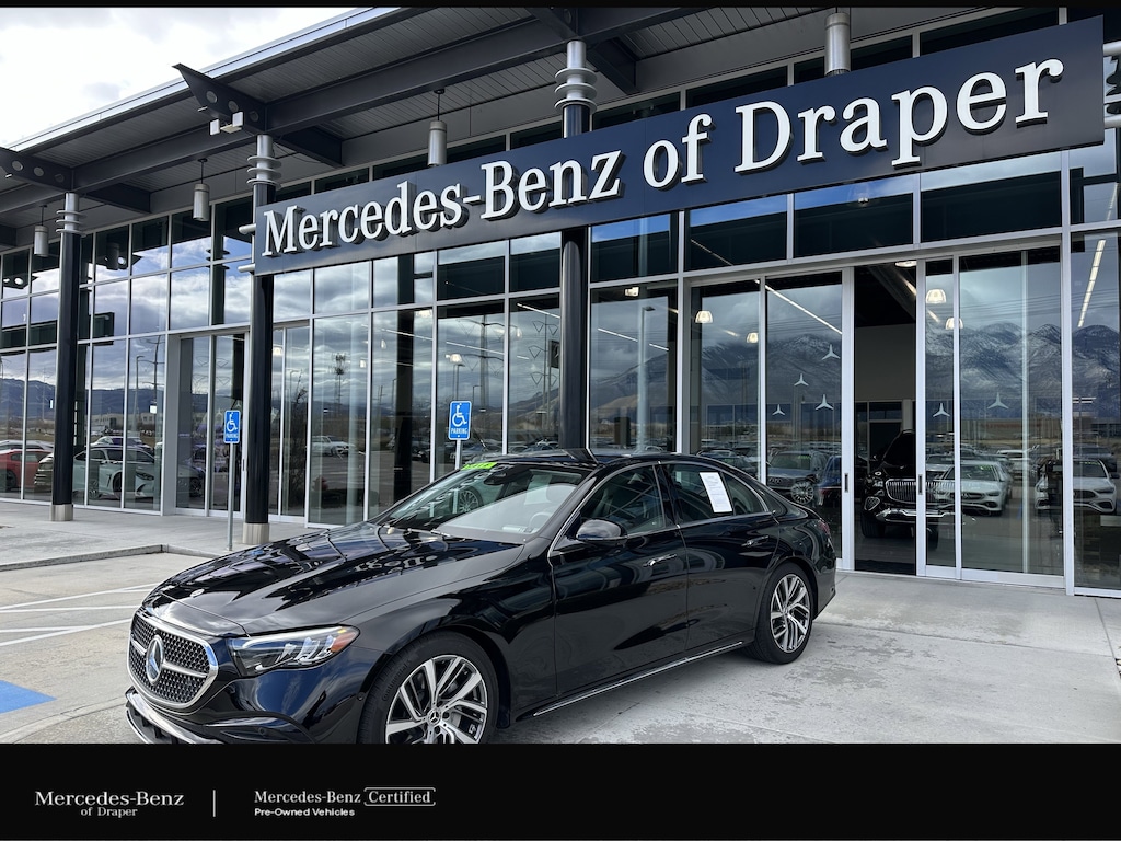Mercedes-Benz of Draper proudly offers this 2025 Black Mercedes-Benz E 350 AWD . It is well equipped and includes these features and benefits: 2.0L I4 Turbocharged, 4MATIC®, 19 Multi-Spoke Light-Alloy Wheels, 4-Wheel Disc Brakes, 6 Speakers, ABS brakes, Air Conditioning, Alloy wheels, AM/FM radio: SiriusXM, Anti-whiplash front head restraints, Apple CarPlay®/Android Auto®, Auto High-beam Headlights, Auto tilt-away steering wheel, Auto-dimming door mirrors, Auto-dimming Rear-View mirror, Automatic temperature control, Brake assist, Bumpers: body-color, Center Console in Natural Grain Black Ash Wood, Delay-off headlights, Driver door bin, Driver vanity mirror, Dual front impact airbags, Dual front side impact airbags, Electronic Stability Control, Emergency communication system: eCall Emergency System, Exterior Parking Camera Rear, First Aid Kit, Four wheel independent suspension, Front anti-roll bar, Front Bucket Seats, Front Center Armrest w/Storage, Front dual zone A/C, Front reading lights, Fully automatic headlights, Garage door transmitter: HomeLink, Genuine wood dashboard insert, Head restraints memory, Heated door mirrors, Heated Front Bucket Seats, Heated front seats, Illuminated entry, Knee airbag, Leather steering wheel, Low tire pressure warning, MB-Tex Upholstery, Memory seat, Navigation system: MBUX, Occupant sensing airbag, Outside temperature display, Overhead airbag, Overhead console, Panic alarm, Passenger door bin, Passenger vanity mirror, Power adjustable front head restraints, Power adjustable rear head restraints, Power door mirrors, Power driver seat, Power moonroof, Power passenger seat, Power steering, Power windows, Premium audio system: MBUX, Radio data system, Radio: 3rd Generation MBUX Multimedia System with Navigation, Rain sensing wipers, Rear anti-roll bar, Rear fog lights, Rear reading lights, Rear seat center armrest, Rear window defroster, Remote keyless entry, Security system, Speed control, Speed-sensing steering, Split folding rear seat, Steering wheel memory, Steering wheel mounted audio controls, Tachometer, Telescoping steering wheel, Tilt steering wheel, Traction control, Trip computer, Turn signal indicator mirrors, Variably intermittent wipers, Weather band radio, and Wheel Locking Bolts. Burmester is a registered trademark of Burmester Audiosysteme GmbH, Berlin, Germany. Bluetooth is a registered Mark of Bluetooth SIG, Inc.