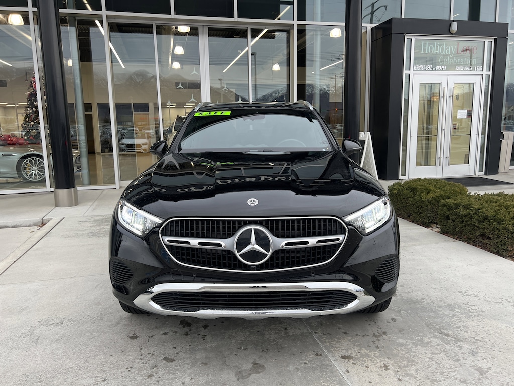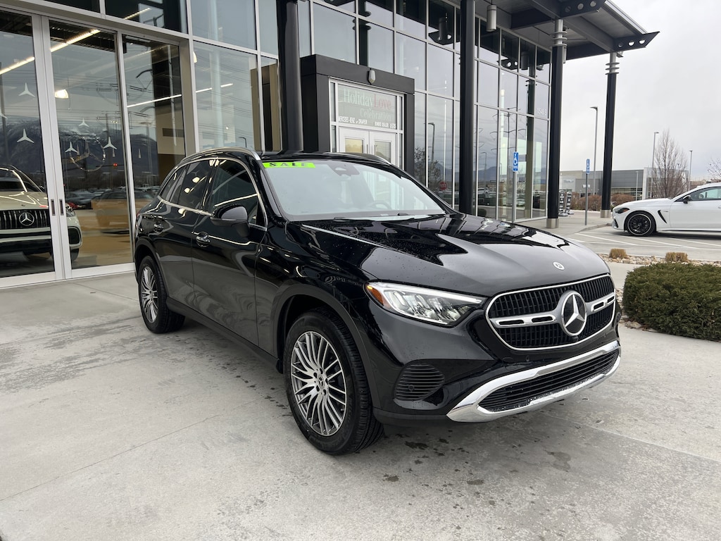 Mercedes-Benz of Draper proudly offers this 2025 Black Mercedes-Benz GLC 300 4MATIC . It is well equipped and includes these features and benefits: 4MATIC®, 11.9 Center Touchscreen Display, 16-Way Power Front Seats w/Memory/Lumbar/Thigh Ext, 18 10-Spoke Wheels, 19 Multispoke Wheels, 3 USB C-Ports, 4-Wheel Disc Brakes, 8 Speakers, ABS brakes, Air Conditioning, All-Weather Black Rubber Floormats (Pack of 4), Alloy wheels, AM/FM radio: SiriusXM, Animated LED Logo Projector, Apple CarPlay®/Android Auto®, Auto High-beam Headlights, Auto tilt-away steering wheel, Auto-dimming Rear-View mirror, Automatic temperature control, Black Fabric Headliner, Brake assist, Bumpers: body-color, Child-Seat-Sensing Airbag, Compass, Delay-off headlights, Driver door bin, Driver vanity mirror, Dual front impact airbags, Dual front side impact airbags, Electronic Stability Control, Emergency communication system: eCall Emergency System, Exterior Parking Camera Rear, First Aid Kit, Four wheel independent suspension, Front anti-roll bar, Front Bucket Seats, Front Center Armrest, Front dual zone A/C, Front reading lights, Fully automatic headlights, Garage door transmitter: HomeLink, Genuine wood dashboard insert, HD Radio, Head restraints memory, Heated door mirrors, Heated Front Bucket Seats, Heated front seats, Illuminated entry, Inductive Wireless Charging, Knee airbag, Leather steering wheel, Load Sill Guard, Low tire pressure warning, MB-Tex Upholstery, Memory seat, Occupant sensing airbag, Outside temperature display, Overhead airbag, Overhead console, Panic alarm, Passenger door bin, Passenger vanity mirror, Piano Black Lacquer Center Console, Power adjustable front head restraints, Power door mirrors, Power driver seat, Power Liftgate, Power passenger seat, Power steering, Power windows, Premium audio system: MBUX, Radio data system, Radio: 3rd Generation MBUX, Rain sensing wipers, Rear anti-roll bar, Rear fog lights, Rear reading lights, Rear seat center armrest, Rear window defroster, Rear window wiper, Remote keyless entry, Security system, SiriusXM Satellite Radio, Speed control, Speed-sensing steering, Split folding rear seat, Spoiler, Steering wheel memory, Steering wheel mounted audio controls, Tachometer, Telescoping steering wheel, Tilt steering wheel, Traction control, Trip computer, Turn signal indicator mirrors, Variably intermittent wipers, Wheel Locking Bolts, Wireless Android Auto®, and Wireless Apple CarPlay®.