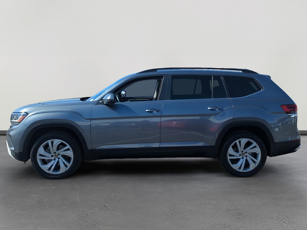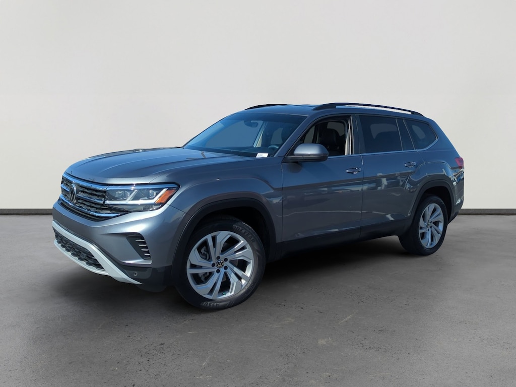 This 2022 Platinum Gray Metallic Volkswagen Atlas 3.6L V6 SE w/Technology FWD is well equipped and includes these features and benefits: 3.60 Axle Ratio, 3rd row seats: split-bench, 4-Wheel Disc Brakes, 6 Speakers, ABS brakes, Air Conditioning, Alloy wheels, AM/FM radio: SiriusXM with 360L, Auto-dimming Rear-View mirror, Automatic temperature control, Brake assist, Bumpers: body-color, Compass, Delay-off headlights, Driver door bin, Driver vanity mirror, Dual front impact airbags, Dual front side impact airbags, Electronic Stability Control, Emergency communication system, Exterior Parking Camera Rear, Four wheel independent suspension, Front anti-roll bar, Front Bucket Seats, Front Center Armrest, Front dual zone A/C, Front fog lights, Front reading lights, Fully automatic headlights, Heated Comfort Front Bucket Seats, Heated door mirrors, Heated front seats, Illuminated entry, Leather Shift Knob, Low tire pressure warning, Occupant sensing airbag, Outside temperature display, Overhead airbag, Overhead console, Panic alarm, Passenger door bin, Passenger vanity mirror, Perforated V-Tex Leatherette Seating Surfaces, Power door mirrors, Power driver seat, Power Liftgate, Power steering, Power windows, Radio data system, Radio: MIB3 Composition Media w/8 Touchscreen, Rain sensing wipers, Rear air conditioning, Rear anti-roll bar, Rear reading lights, Rear seat center armrest, Rear window defroster, Rear window wiper, Remote keyless entry, Roof rack: rails only, Security system, Speed control, Speed-sensing steering, Split folding rear seat, Spoiler, Standard Suspension, Steering wheel mounted audio controls, Tachometer, Telescoping steering wheel, Tilt steering wheel, Traction control, Trip computer, Turn signal indicator mirrors, Variably intermittent wipers, and Wheels: 20 x 8J 5-Spoke Silver Painted Alloy. 3.60 Axle Ratio, 3rd row seats: split-bench, 4-Wheel Disc Brakes, 6 Speakers, ABS brakes, Air Conditioning, Alloy wheels, AM/FM radio: SiriusXM with 360L, Auto-dimming Rear-View mirror, Automatic temperature control, Brake assist, Bumpers: body-color, Compass, Delay-off headlights, Driver door bin, Driver vanity mirror, Dual front impact airbags, Dual front side impact airbags, Electronic Stability Control, Emergency communication system, Exterior Parking Camera Rear, Four wheel independent suspension, Front anti-roll bar, Front Bucket Seats, Front Center Armrest, Front dual zone A/C, Front fog lights, Front reading lights, Fully automatic headlights, Heated Comfort Front Bucket Seats, Heated door mirrors, Heated front seats, Illuminated entry, Leather Shift Knob, Low tire pressure warning, Occupant sensing airbag, Outside temperature display, Overhead airbag, Overhead console, Panic alarm, Passenger door bin, Passenger vanity mirror, Perforated V-Tex Leatherette Seating Surfaces, Power door mirrors, Power driver seat, Power Liftgate, Power steering, Power windows, Radio data system, Radio: MIB3 Composition Media w/8 Touchscreen, Rain sensing wipers, Rear air conditioning, Rear anti-roll bar, Rear reading lights, Rear seat center armrest, Rear window defroster, Rear window wiper, Remote keyless entry, Roof rack: rails only, Security system, Speed control, Speed-sensing steering, Split folding rear seat, Spoiler, Standard Suspension, Steering wheel mounted audio controls, Tachometer, Telescoping steering wheel, Tilt steering wheel, Traction control, Trip computer, Turn signal indicator mirrors, Variably intermittent wipers, Wheels: 20 x 8J 5-Spoke Silver Painted Alloy.