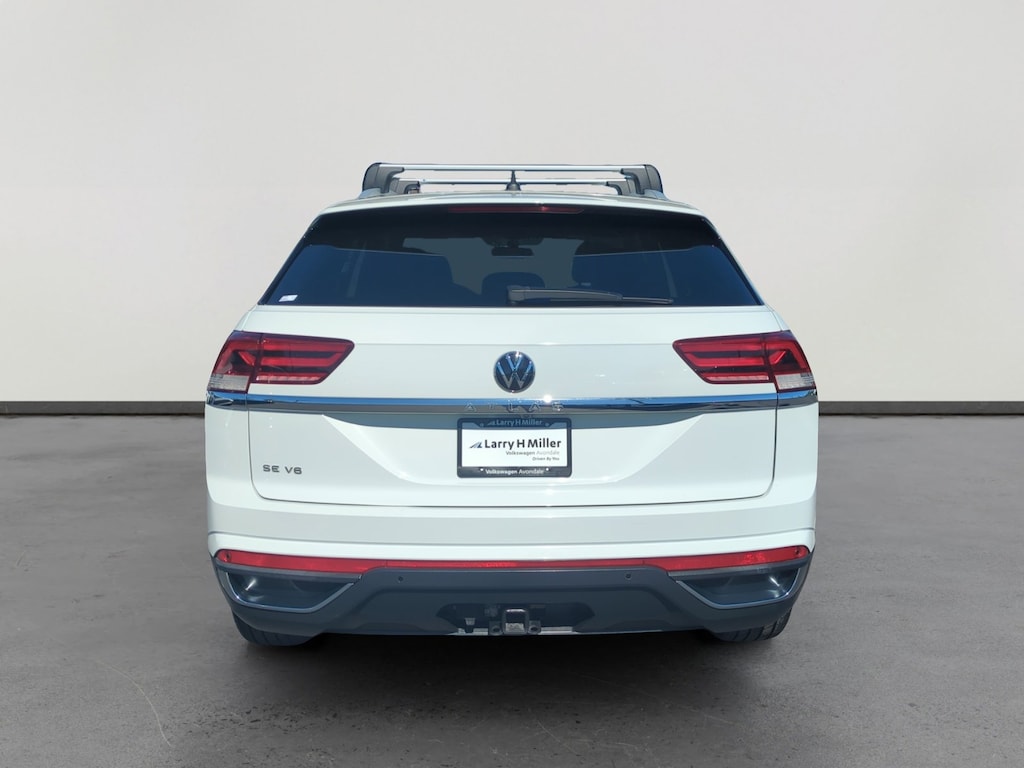 This 2022 Pure White Volkswagen Atlas Cross Sport 3.6L V6 SE w/Technology FWD is well equipped and includes these features and benefits: Panoramic Sunroof Package (Power Tilting & Sliding Panoramic Sunroof), Volkswagen Certified Pre-Owned Certified, 3.60 Axle Ratio, 4-Wheel Disc Brakes, 6 Speakers, ABS brakes, Air Conditioning, Alloy wheels, AM/FM radio: SiriusXM with 360L, Auto-dimming Rear-View mirror, Automatic temperature control, Base Carrier Bars Roof Rack (Set of 2), Brake assist, Bumpers: body-color, Compass, Delay-off headlights, Driver door bin, Driver vanity mirror, Dual front impact airbags, Dual front side impact airbags, Easy Open Power Rear Liftgate Delete, Electronic Stability Control, Emergency communication system, Extended Range Remote Key Fob Upgrade, Exterior Parking Camera Rear, Four wheel independent suspension, Frameless Auto-Dimming Rearview Mirror, Front anti-roll bar, Front Bucket Seats, Front Center Armrest, Front dual zone A/C, Front fog lights, Front reading lights, Fully automatic headlights, Heated Comfort Front Bucket Seats, Heated door mirrors, Heated front seats, Heated Side Mirrors Delete, Heavy Duty Trunk Liner w/VW CarGo Blocks, Illuminated entry, Leather Shift Knob, Low tire pressure warning, Luggage Net, Occupant sensing airbag, Outside temperature display, Overhead airbag, Overhead console, Panic alarm, Passenger door bin, Passenger vanity mirror, Perforated V-Tex Leatherette Seating Surfaces, Power door mirrors, Power driver seat, Power Liftgate, Power steering, Power windows, Radio data system, Radio: MIB3 Composition Media w/8 Touchscreen, Rain sensing wipers, Rear anti-roll bar, Rear reading lights, Rear seat center armrest, Rear Sensors Delete, Rear window defroster, Rear window wiper, Remote keyless entry, Roof rack: rails only, Rubber Mats Kit, Security system, Speed control, Speed-sensing steering, Split folding rear seat, Spoiler, Standard Suspension, Steering wheel mounted audio controls, Tachometer, Telescoping steering wheel, Tilt steering wheel, Traction control, Trip computer, Turn signal indicator mirrors, Variably intermittent wipers, Volkswagen Logo Puddle Lights, and Wheels: 20 x 8J 5-Spoke Silver Painted Alloy. Certified. Volkswagen Certified Pre-Owned Details: