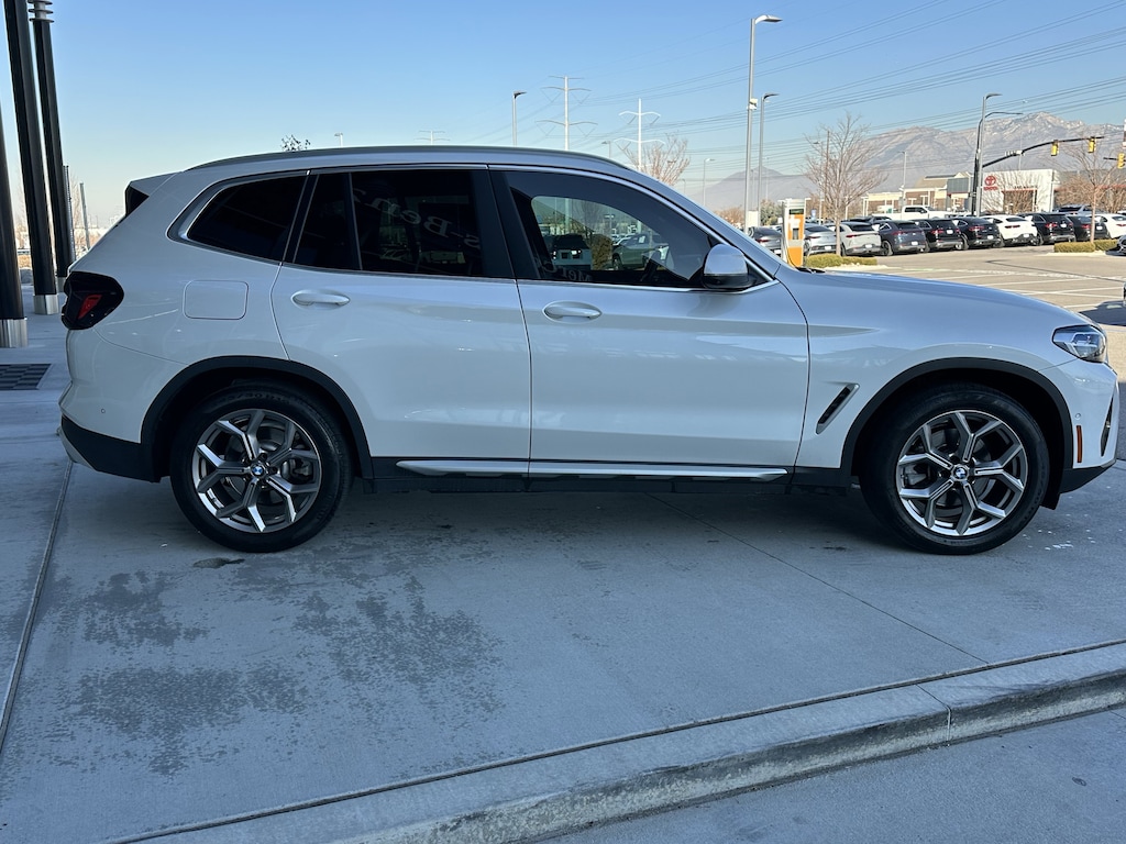 Mercedes-Benz of Draper proudly offers this 2023 Mineral White Metallic BMW X3 xDrive30i AWD . It is well equipped and includes these features and benefits: Connected Package Pro, Parking Assistance Package (Active Park Distance Control, Parking Assistant Plus, Rear-View Camera, and Surround View w/3D View), Premium Package (Driver Lumbar Support, Heated Front Seats, Heated Steering Wheel, Live Cockpit Pro w/Navigation, and Panoramic Moonroof), 8-Speed Automatic Sport, 12 Speakers, 3.385 Axle Ratio, 4-Wheel Disc Brakes, ABS brakes, Air Conditioning, Alloy wheels, AM/FM Radio, AM/FM radio: SiriusXM, Apple CarPlay & Android Auto Compatibility, Auto High-beam Headlights, Auto-dimming door mirrors, Auto-dimming Rear-View mirror, Automatic temperature control, BMW Assist eCall, BMW TeleServices, Brake assist, Bumpers: body-color, Comfort Access Keyless Entry, ConnectedDrive Services, Delay-off headlights, Driver door bin, Driver vanity mirror, Dual front impact airbags, Dual front side impact airbags, Electronic Stability Control, Emergency communication system: BMW Assist eCall, Enhanced USB & Bluetooth w/Smartphone Integration, Exterior Parking Camera Rear, Fine Wood Open-Pored Ash Grain Trim, Four wheel independent suspension, Front anti-roll bar, Front Bucket Seats, Front Center Armrest, Front dual zone A/C, Front reading lights, Fully automatic headlights, Garage door transmitter, Genuine wood dashboard insert, Genuine wood door panel insert, Heated door mirrors, Hi-Fi Sound System, Illuminated entry, Knee airbag, Low tire pressure warning, Memory seat, Navigation, Navigation System, Occupant sensing airbag, Outside temperature display, Overhead airbag, Panic alarm, Passenger door bin, Passenger vanity mirror, Perforated SensaTec Upholstery, Power door mirrors, Power driver seat, Power Front Seats, Power Liftgate, Power passenger seat, Power steering, Power windows, Radio data system, Rain sensing wipers, Rear air conditioning, Rear anti-roll bar, Rear reading lights, Rear seat center armrest, Rear window defroster, Rear window wiper, Remote keyless entry, Security system, SiriusXM Satellite Radio, Speed control, Speed-sensing steering, Speed-Sensitive Wipers, Split folding rear seat, Spoiler, Sport Seats, Sport steering wheel, Steering wheel mounted audio controls, Tachometer, Telescoping steering wheel, Tilt steering wheel, Traction control, Trailer Hitch, Trip computer, Turn signal indicator mirrors, Variably intermittent wipers, Wheels: 19 x 7.5 Y-Spoke (Style 693), WiFi Hotspot, and Wireless Charging.