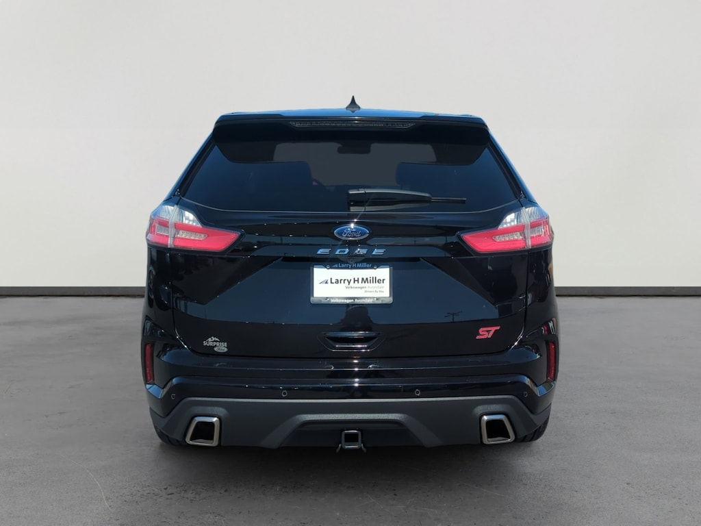 This 2021 Agate Black Metallic Ford Edge ST AWD is well equipped and includes these features and benefits: Equipment Group 401A (110V/150W AC Power Outlet, Adaptive Cruise Control w/Stop & Go, Adaptive LED Headlamps, Auto-Dimming Driver's Sideview Mirror, Connected Built-In Navigation, Cooled Front Seats, Enhanced Active Park Assist, Evasive Steering Assist, Foot Activated Hands-Free Liftgate, Front 180-Degree Camera w/Split View, Heated Rear Seats, Heated Steering Wheel, Lane Centering, Panoramic Vista Roof, Perimeter Alarm, Power Tilt/Telescoping Steering Column w/Memory, Remote Start System, Universal Garage Door Opener (UGDO), and Wireless Charging Pad), AWD, 12 Speakers, 3.39 Axle Ratio, 4-Wheel Disc Brakes, ABS brakes, Air Conditioning, Alloy wheels, AM/FM radio: SiriusXM with 360L, Auto High-beam Headlights, Auto-dimming Rear-View mirror, Automatic temperature control, Brake assist, Bumpers: body-color, Compass, Delay-off headlights, Driver door bin, Driver vanity mirror, Dual front impact airbags, Dual front side impact airbags, Electronic Stability Control, Emergency communication system: SYNC 4 911 Assist, FordPass Connect, Four wheel independent suspension, Front anti-roll bar, Front Bucket Seats, Front Center Armrest w/Storage, Front dual zone A/C, Front fog lights, Front reading lights, Fully automatic headlights, Heated door mirrors, Heated front seats, Illuminated entry, Knee airbag, Leather-Trimmed Heated ST Bolstered Bucket Seats, Low tire pressure warning, Memory seat, Occupant sensing airbag, Outside temperature display, Overhead airbag, Overhead console, Panic alarm, Passenger door bin, Passenger vanity mirror, Power door mirrors, Power driver seat, Power Liftgate, Power passenger seat, Power steering, Power windows, Radio: B&O Sound System by Bang & Olufsen, Rain sensing wipers, Rear anti-roll bar, Rear reading lights, Rear seat center armrest, Rear window defroster, Rear window wiper, Remote keyless entry, SiriusXM w/360L, Speed control, Speed-Sensitive Wipers, Split folding rear seat, Spoiler, Steering wheel mounted audio controls, SYNC 4A w/Enhanced Voice Recognition, Tachometer, Telescoping steering wheel, Tilt steering wheel, Traction control, Trip computer, Turn signal indicator mirrors, Variably intermittent wipers, Wheels: 20 Bright-Machined Aluminum, and Wheels: 21 Premium Gloss Black-Painted Aluminum. AWD, 110V/150W AC Power Outlet, 12 Speakers, 3.39 Axle Ratio, 4-Wheel Disc Brakes, ABS brakes, Adaptive Cruise Control w/Stop & Go, Adaptive LED Headlamps, Air Conditioning, Alloy wheels, AM/FM radio: SiriusXM with 360L, Auto High-beam Headlights, Auto-Dimming Driver's Sideview Mirror, Auto-dimming Rear-View mirror, Automatic temperature control, Brake assist, Bumpers: body-color, Compass, Connected Built-In Navigation, Cooled Front Seats, Delay-off headlights, Driver door bin, Driver vanity mirror, Dual front impact airbags, Dual front side impact airbags, Electronic Stability Control, Emergency communication system: SYNC 4 911 Assist, Enhanced Active Park Assist, Equipment Group 401A, Evasive Steering Assist, Foot Activated Hands-Free Liftgate, FordPass Connect, Four wheel independent suspension, Front 180-Degree Camera w/Split View, Front anti-roll bar, Front Bucket Seats, Front Center Armrest w/Storage, Front dual zone A/C, Front fog lights, Front reading lights, Fully automatic headlights, Heated door mirrors, Heated front seats, Heated Rear Seats, Heated Steering Wheel, Illuminated entry, Knee airbag, Lane Centering, Leather-Trimmed Heated ST Bolstered Bucket Seats, Low tire pressure warning, Memory seat, Occupant sensing airbag, Outside temperature display, Overhead airbag, Overhead console, Panic alarm, Panoramic Vista Roof, Passenger door bin, Passenger vanity mirror, Perimeter Alarm, Power door mirrors, Power driver seat, Power Liftgate, Power passenger seat, Power steering, Power Tilt/Telescoping Steering Column w/Memory, Power windows, Radio: B&O Sound System by Bang & Olufsen, Rain se
