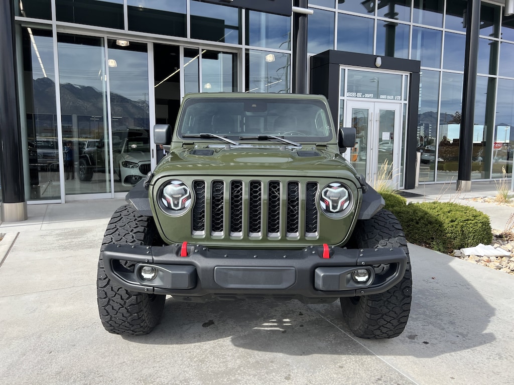 Mercedes-Benz of Draper proudly offers this 2021 Sarge Green Clearcoat Jeep Gladiator Rubicon 4WD . It is well equipped and includes these features and benefits: 8.4 Radio & Premium Audio Group (1-Year SiriusXM Guardian Trial, 5-Year SiriusXM Traffic Service, 5-Year SiriusXM Travel Link Service, 8.4 Touchscreen Display, Alpine Premium Audio System, Auto-Dimming Rear-View Mirror, Emergency/Assistance Call, For Details, Visit DriveUconnect.com, GPS Navigation, HD Radio, Radio: Uconnect 4C Nav w/8.4 Display, SiriusXM Traffic Plus, and SiriusXM Travel Link), Advanced Safety Group (Advanced Brake Assist, Auto High Beam Headlamp Control, and Full Speed Forward Collision Warning Plus), Cold Weather Group (Heated Front Seats and Heated Steering Wheel), GVWR: 6,250 lbs w/Max Tow Package, Quick Order Package 24R, Safety Group (Blind Spot & Cross Path Detection and ParkSense Rear Park Assist System), Trailer Tow Package (240 Amp Alternator, Class IV Hitch Receiver, Heavy-Duty Engine Cooling, and Trailer Hitch Zoom), 4-Wheel Disc Brakes, 4.10 Rear Axle Ratio, 8 Speakers, 97 mph Maximum Speed Calibration, ABS brakes, Air Conditioning, Alloy wheels, AM/FM radio: SiriusXM, Apple CarPlay/Android Auto, Automatic temperature control, Black 3-Piece Hard Top, Brake assist, Compass, Delay-off headlights, Driver door bin, Driver vanity mirror, Dual front impact airbags, Dual front side impact airbags, Electronic Stability Control, Freedom Panel Storage Bag, Front anti-roll bar, Front Bucket Seats, Front Center Armrest w/Storage, Front dual zone A/C, Front fog lights, Front License Plate Bracket, Front reading lights, Fully automatic headlights, Garage door transmitter, Heated door mirrors, Illuminated entry, Integrated roll-over protection, Leather steering wheel, Low tire pressure warning, Occupant sensing airbag, Outside temperature display, Panic alarm, ParkView Rear Back-Up Camera, Passenger door bin, Passenger vanity mirror, Performance Suspension, Power door mirrors, Power steering, Power windows, Premium Cloth Low-Back Bucket Seats, Radio data system, Radio: Uconnect 4 w/7 Display, Rear anti-roll bar, Rear reading lights, Rear Sliding Window, Rear Window Defroster, Redical Instrument Panel Bezels, Remote keyless entry, Remote Proximity Keyless Entry, Remote Start System, Security system, Speed control, Split folding rear seat, Steering wheel mounted audio controls, Tachometer, Telescoping steering wheel, Tilt steering wheel, Traction control, Trip computer, Variably intermittent wipers, Voltmeter, and Wheels: 17 x 7.5 Granite Crystal AluminuM.