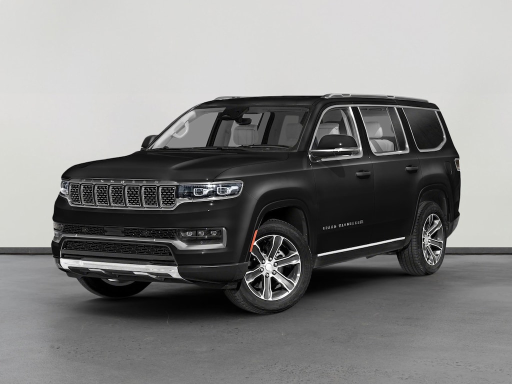 This 2023 Diamond Black Crystal Pearlcoat Jeep Grand Wagoneer Series III 4WD is well equipped and includes these features and benefits: Quick Order Package 28W, Two Tone Paint Group, 3.92 Rear Axle Ratio, 3rd row seats: bench, 4-Wheel Disc Brakes, ABS brakes, Adjustable pedals, Air Conditioning, Alloy wheels, AM/FM radio: SiriusXM with 360L, Anti-whiplash front head restraints, Audio memory, Auto High-beam Headlights, Auto-dimming door mirrors, Auto-dimming Rear-View mirror, Auto-leveling suspension, Automatic temperature control, Body Color Roof, Brake assist, Bumpers: body-color, Compass, Delay-off headlights, Driver door bin, Driver vanity mirror, Driver's Seat Mounted Armrest, Dual front impact airbags, Dual front side impact airbags, Electronic Stability Control, Embossed Metal Interior Accents, Emergency communication system: Automatic SOS Call, Four wheel independent suspension, Front anti-roll bar, Front Bucket Seats, Front Center Armrest w/Storage, Front dual zone A/C, Front fog lights, Front reading lights, Fully automatic headlights, Garage door transmitter, Genuine wood console insert, Genuine wood dashboard insert, Genuine wood door panel insert, Heads-Up Display, Heated door mirrors, Heated front seats, Heated rear seats, Heated steering wheel, Illuminated entry, Knee airbag, Leather steering wheel, Low tire pressure warning, Memory seat, Navigation System, Night vision lights, Normal Duty Suspension, Occupant sensing airbag, Outside temperature display, Overhead airbag, Overhead console, Panic alarm, Passenger door bin, Passenger seat mounted armrest, Passenger vanity mirror, Pedal memory, Power adjustable front head restraints, Power door mirrors, Power driver seat, Power Liftgate, Power moonroof, Power passenger seat, Power steering, Power windows, Premium Leather Trimmed Bucket Seats, Radio data system, Radio: Uconnect 5 Nav w/12.0 Display, Rain sensing wipers, Rear air conditioning, Rear anti-roll bar, Rear dual zone A/C, Rear reading lights, Rear seat center armrest, Rear window defroster, Rear window wiper, Reclining 3rd row seat, Remote keyless entry, Roof rack, Security system, Speed control, Speed-sensing steering, Speed-Sensitive Wipers, Split folding rear seat, Steering wheel memory, Steering wheel mounted audio controls, Tachometer, Telescoping steering wheel, Tilt steering wheel, Traction control, Trip computer, Turn signal indicator mirrors, Variably intermittent wipers, Ventilated front seats, Ventilated rear seats, Voltmeter, and Wheels: 22 x 9.0 Premium 4 Aluminum. 3.92 Rear Axle Ratio, 3rd row seats: bench, 4-Wheel Disc Brakes, ABS brakes, Adjustable pedals, Air Conditioning, Alloy wheels, AM/FM radio: SiriusXM with 360L, Anti-whiplash front head restraints, Audio memory, Auto High-beam Headlights, Auto-dimming door mirrors, Auto-dimming Rear-View mirror, Auto-leveling suspension, Automatic temperature control, Body Color Roof, Brake assist, Bumpers: body-color, Compass, Delay-off headlights, Driver door bin, Driver vanity mirror, Driver's Seat Mounted Armrest, Dual front impact airbags, Dual front side impact airbags, Electronic Stability Control, Embossed Metal Interior Accents, Emergency communication system: Automatic SOS Call, Four wheel independent suspension, Front anti-roll bar, Front Bucket Seats, Front Center Armrest w/Storage, Front dual zone A/C, Front fog lights, Front reading lights, Fully automatic headlights, Garage door transmitter, Genuine wood console insert, Genuine wood dashboard insert, Genuine wood door panel insert, Heads-Up Display, Heated door mirrors, Heated front seats, Heated rear seats, Heated steering wheel, Illuminated entry, Knee airbag, Leather steering wheel, Low tire pressure warning, Memory seat, Navigation System, Night vision lights, Normal Duty Suspension, Occupant sensing airbag, Outside temperature display, Overhead airbag, Overhead console, Panic alarm, Passenger door bin, Passenger seat mounted armrest, Passenger vanity mirror, Pedal memory, Power