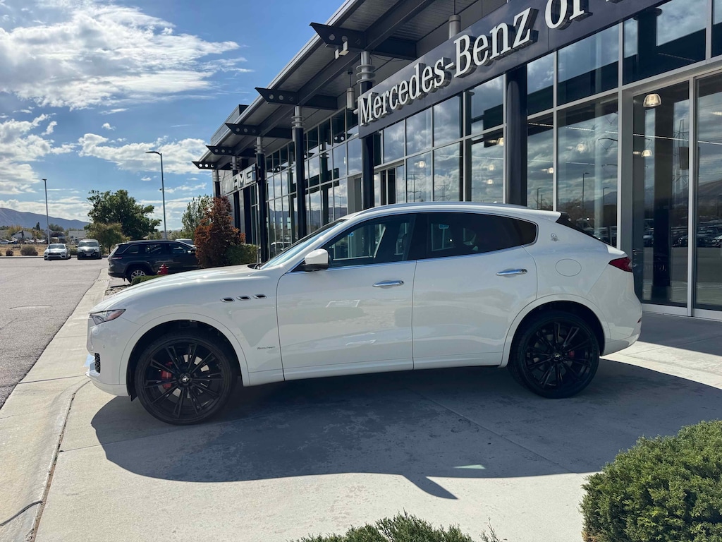 Mercedes-Benz of Draper proudly offers this 2018 White Maserati Levante GranLusso AWD . It is well equipped and includes these features and benefits: 12-Way Heated Power Front Seats, 14 Speakers, 2.80 Axle Ratio, 4-Wheel Disc Brakes, ABS brakes, Active Shift Paddles, Adaptive suspension, Air Conditioning, Alloy wheels, AM/FM radio: SiriusXM, Anti-whiplash front head restraints, Apple CarPlay/Android Auto, Auto High-beam Headlights, Auto-dimming door mirrors, Auto-dimming Rear-View mirror, Auto-leveling suspension, Automatic temperature control, Brake assist, Bumpers: body-color, Compass, Delay-off headlights, Driver door bin, Driver vanity mirror, Dual front impact airbags, Dual front side impact airbags, Electronic Stability Control, Exterior Parking Camera Rear, Four wheel independent suspension, Front & Rear Parking Sensors, Front anti-roll bar, Front Bucket Seats, Front Center Armrest, Front dual zone A/C, Front fog lights, Front reading lights, Full Premium Drilled Leather Upholstery, Garage door transmitter, Genuine wood console insert, Genuine wood dashboard insert, Genuine wood door panel insert, harman/kardon® Speakers, Headlight cleaning, Heated door mirrors, Heated front seats, Heated steering wheel, High intensity discharge headlights: Bi-Xenon, Illuminated entry, Key Fob w/Remote Start Function, Leather Shift Knob, Leather steering wheel, Low tire pressure warning, Memory seat, Navigation System, Occupant sensing airbag, Outside temperature display, Overhead airbag, Overhead console, Panic alarm, Passenger door bin, Passenger vanity mirror, Power door mirrors, Power driver seat, Power Liftgate, Power moonroof, Power passenger seat, Power steering, Power windows, Radio data system, Radio: Maserati Touch Control Plus, Rain sensing wipers, Rear anti-roll bar, Rear reading lights, Rear seat center armrest, Rear window defroster, Rear window wiper, Remote keyless entry, Roof rack: rails only, Security system, Speed control, Speed-sensing steering, Speed-Sensitive Wipers, Split folding rear seat, Steering wheel memory, Steering wheel mounted audio controls, Tachometer, Telescoping steering wheel, Tilt steering wheel, Traction control, Trip computer, Turn signal indicator mirrors, Variably intermittent wipers, Ventilated front seats, Wheels: 19 Zefiro Polished Alloy, and Wheels: 20 Nereo Alloy.