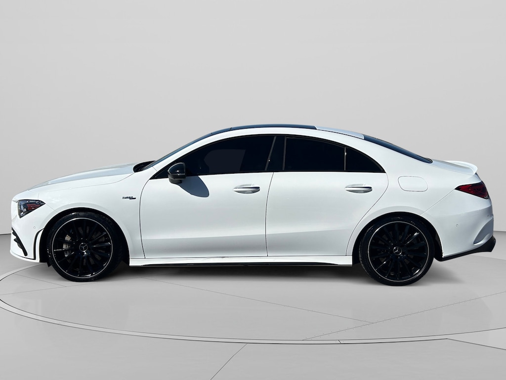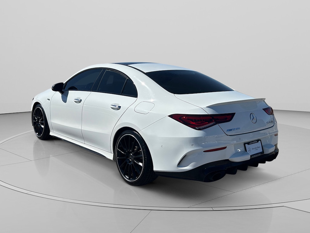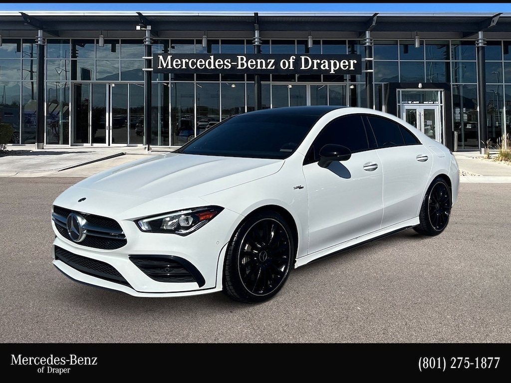 Mercedes-Benz of Draper proudly offers this 2021 Red Metallic Mercedes-Benz CLA CLA 35 AMG® AWD . It is well equipped and includes these features and benefits: 4-Way Lumbar Support, 4-Wheel Disc Brakes, 8 Speakers, ABS brakes, Air Conditioning, Alloy wheels, AM/FM radio, Apple CarPlay®/Android Auto®, Automatic temperature control, Brake assist, Bumpers: body-color, Child-Seat-Sensing Airbag, Delay-off headlights, Driver door bin, Driver vanity mirror, Dual front impact airbags, Dual front side impact airbags, Electronic Stability Control, Emergency communication system: eCall Emergency System, Exterior Parking Camera Rear, Four wheel independent suspension, Front anti-roll bar, Front Bucket Seats, Front Center Armrest, Front dual zone A/C, Front reading lights, Fully automatic headlights, HD Radio, Heated door mirrors, Illuminated entry, Knee airbag, Low tire pressure warning, MB-Tex Upholstery, Memory seat, Occupant sensing airbag, Outside temperature display, Overhead airbag, Overhead console, Panic alarm, Passenger door bin, Passenger vanity mirror, Power door mirrors, Power driver seat, Power Driver Seat w/Memory, Power moonroof, Power passenger seat, Power Passenger Seat w/Memory, Power steering, Power windows, Power-Adjustable Front Seats, Radio data system, Radio: MBUX Multimedia System w/10.25 Touchscreen, Rain sensing wipers, Rear anti-roll bar, Rear fog lights, Rear reading lights, Rear seat center armrest, Rear window defroster, Remote keyless entry, Security system, Smartphone Integration, Speed control, Speed-sensing steering, Split folding rear seat, Spoiler, Sport steering wheel, Steering wheel mounted audio controls, Tachometer, Telescoping steering wheel, Tilt steering wheel, Traction control, Trip computer, Turn signal indicator mirrors, Variably intermittent wipers, and Wheels: 18 Twin 5-Spoke Alloy w/Black Accents. Burmester is a registered trademark of Burmester Audiosysteme GmbH, Berlin, Germany. Bluetooth is a registered Mark of Bluetooth SIG, Inc.