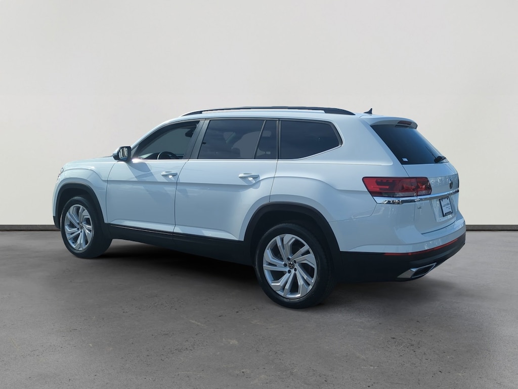 This 2023 Pure White Volkswagen Atlas 2.0T SE w/Technology FWD is well equipped and includes these features and benefits: 3.60 Axle Ratio, 3rd row seats: split-bench, 4-Wheel Disc Brakes, 6 Speakers, ABS brakes, Air Conditioning, Alloy wheels, AM/FM radio: SiriusXM with 360L, Auto-dimming Rear-View mirror, Automatic temperature control, Brake assist, Bumpers: body-color, Compass, Delay-off headlights, Driver door bin, Driver vanity mirror, Dual front impact airbags, Dual front side impact airbags, Electronic Stability Control, Emergency communication system: VW Car-Net Safe & Secure 5-year, Exterior Parking Camera Rear, Four wheel independent suspension, Front anti-roll bar, Front Bucket Seats, Front Center Armrest, Front dual zone A/C, Front fog lights, Front reading lights, Fully automatic headlights, Heated Comfort Front Bucket Seats, Heated door mirrors, Heated front seats, Illuminated entry, Leather Shift Knob, Low tire pressure warning, Occupant sensing airbag, Outside temperature display, Overhead airbag, Overhead console, Panic alarm, Passenger door bin, Passenger vanity mirror, Perforated V-Tex Leatherette Seating Surfaces, Power door mirrors, Power driver seat, Power Liftgate, Power steering, Power windows, Radio data system, Radio: MIB3 Composition Media w/8 Touchscreen, Rain sensing wipers, Rear air conditioning, Rear anti-roll bar, Rear reading lights, Rear seat center armrest, Rear window defroster, Rear window wiper, Remote keyless entry, Security system, Speed control, Speed-sensing steering, Split folding rear seat, Spoiler, Standard Suspension, Steering wheel mounted audio controls, Tachometer, Telescoping steering wheel, Tilt steering wheel, Traction control, Trip computer, Turn signal indicator mirrors, Variably intermittent wipers, and Wheels: 20 x 8J 5-Spoke Silver Painted Alloy. 3.60 Axle Ratio, 3rd row seats: split-bench, 4-Wheel Disc Brakes, 6 Speakers, ABS brakes, Air Conditioning, Alloy wheels, AM/FM radio: SiriusXM with 360L, Auto-dimming Rear-View mirror, Automatic temperature control, Brake assist, Bumpers: body-color, Compass, Delay-off headlights, Driver door bin, Driver vanity mirror, Dual front impact airbags, Dual front side impact airbags, Electronic Stability Control, Emergency communication system: VW Car-Net Safe & Secure 5-year, Exterior Parking Camera Rear, Four wheel independent suspension, Front anti-roll bar, Front Bucket Seats, Front Center Armrest, Front dual zone A/C, Front fog lights, Front reading lights, Fully automatic headlights, Heated Comfort Front Bucket Seats, Heated door mirrors, Heated front seats, Illuminated entry, Leather Shift Knob, Low tire pressure warning, Occupant sensing airbag, Outside temperature display, Overhead airbag, Overhead console, Panic alarm, Passenger door bin, Passenger vanity mirror, Perforated V-Tex Leatherette Seating Surfaces, Power door mirrors, Power driver seat, Power Liftgate, Power steering, Power windows, Radio data system, Radio: MIB3 Composition Media w/8 Touchscreen, Rain sensing wipers, Rear air conditioning, Rear anti-roll bar, Rear reading lights, Rear seat center armrest, Rear window defroster, Rear window wiper, Remote keyless entry, Security system, Speed control, Speed-sensing steering, Split folding rear seat, Spoiler, Standard Suspension, Steering wheel mounted audio controls, Tachometer, Telescoping steering wheel, Tilt steering wheel, Traction control, Trip computer, Turn signal indicator mirrors, Variably intermittent wipers, Wheels: 20 x 8J 5-Spoke Silver Painted Alloy.
